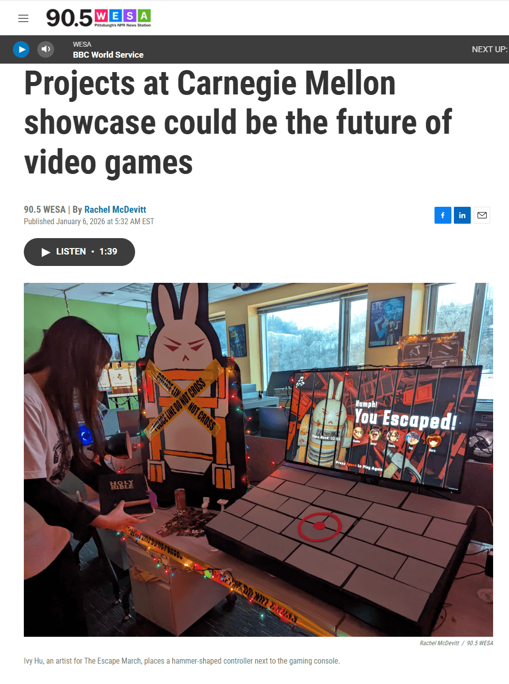 The Escape March is a rhythm-based escape game with a darkly comedic twist. Players, imprisoned for disliking Chiikawa, must use a hammer controller to strike in perfect rhythm, breaking through walls across five themed rooms. With thunder cues, absurd soundscapes, and jump scares, every beat matters—three mistakes lead to execution. Inspired by The Shawshank Redemption, the game blends tension, parody, and playful absurdity, creating an immersive escape where rhythm is survival.
